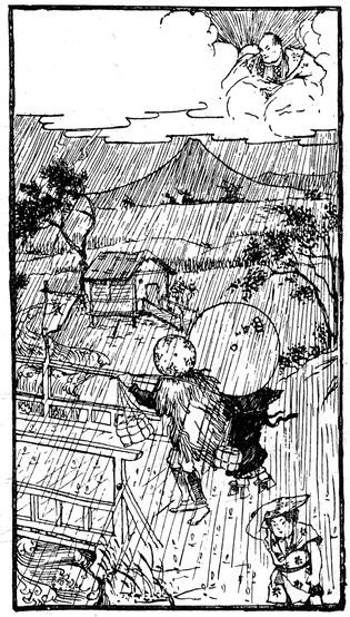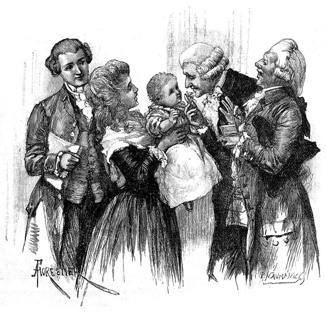 What "may I" meant was a gentle pressure of the lips upon the smoky cheek of John. If John had been astonished before he was still more astonished now—so much so that the pipe he was smoking fell from his fingers, and was broken into fragments on the floor. What had he, a grumpy bachelor, to do with kissing? Twenty years had passed since his cheek had felt the pressure of lips, and then they were the death-cold lips of a younger brother—surely about the size of this strange imp—who had left him with that dumb farewell for ever.