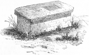 After enjoying the view from the top of the State House a while, I walked to Copp's Hill, a little east of Charlestown Bridge, at the north end of the town, where I tarried until sunset in the ancient burying-ground. The earliest name of this eminence was Snow Hill. It was subsequently named after its owner, William Copp.[14] It came into the possession of the Ancient and Honorable Artillery Company by mortgage; and when, in 1775, they were forbidden by Gage to parade on the Common, they went to this, their own ground, and drilled in defiance of his threats. The fort, or battery, that was built there by the British, just before the battle of Bunker Hill, stood near its southeast brow, adjoining the burying-ground. The remains of many eminent men repose in that little cemetery. Close by the entrance is the vault of the Mather family. It is covered by a plain, oblong structure of brick, three feet high and about six feet long, upon which is laid a heavy brown stone slab, with a tablet of slate, bearing the names of the principal tenants below.[15]
