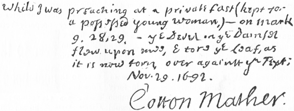 There is also a rich depository of the autographs of the Pilgrim fathers and their immediate descendants. There are no less than twenty-five large folio volumes of valuable manuscript letters and other documents; besides which are six thick quarto manuscript volumes—a commentary on the Holy Scriptures—in the handwriting of Cotton Mather. From an autograph letter of that singular man the annexed fac-simile of his writing and signature is given. Among the portraits in the cabinet of the society are those of Governor Winslow, supposed to have been painted by Vandyke, Increase Mather, and Peter Faneuil, the founder of Faneuil Hall.