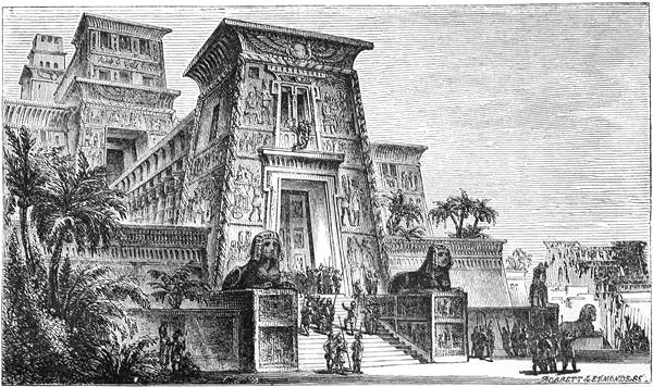 It will be obvious, from this description of the valley of the Nile, that it formed a country which was in ancient times isolated and secluded, in a very striking manner, from all the rest of the world. It was wholly shut in by deserts, on every side, by land; and the shoals, and sand-bars, and other dangers of navigation which marked the line of the coast, seemed to forbid approach by sea. Here it remained for many ages, under the rule of its own native ancient kings. Its population was peaceful and industrious. Its scholars were famed throughout the world for their learning, their science, and their philosophy. It was in these ages, before other nations had intruded upon its peaceful seclusion, that the Pyramids were built, and the enormous monoliths carved, and those vast temples reared whose ruined columns are now the wonder of mankind. During these remote ages,[Pg 33] too, Egypt was, as now, the land of perpetual fertility and abundance. There would always be corn in Egypt, wherever else famine might rage. The neighboring nations and tribes in Arabia, Palestine, and Syria, found their way to it, accordingly, across the deserts on the eastern side, when driven by want, and thus opened a way of communication. At length the Persian monarchs, after extending their empire westward to the Mediterranean, found access by the same road to Pelusium, and thence overran and conquered the country. At last, about two hundred and fifty years before the time of Cleopatra, Alexander the Great, when he subverted the Persian empire, took possession of Egypt, and annexed it, among the other Persian provinces, to his own dominions. At the division of Alexander’s empire, after his death, Egypt fell to one of his generals, named Ptolemy. Ptolemy made it his kingdom, and left it, at his death, to his heirs. A long line of sovereigns succeeded him, known in history as the dynasty of the Ptolemies—Greek princes, reigning over an Egyptian realm. Cleopatra was the daughter of the eleventh in the line.