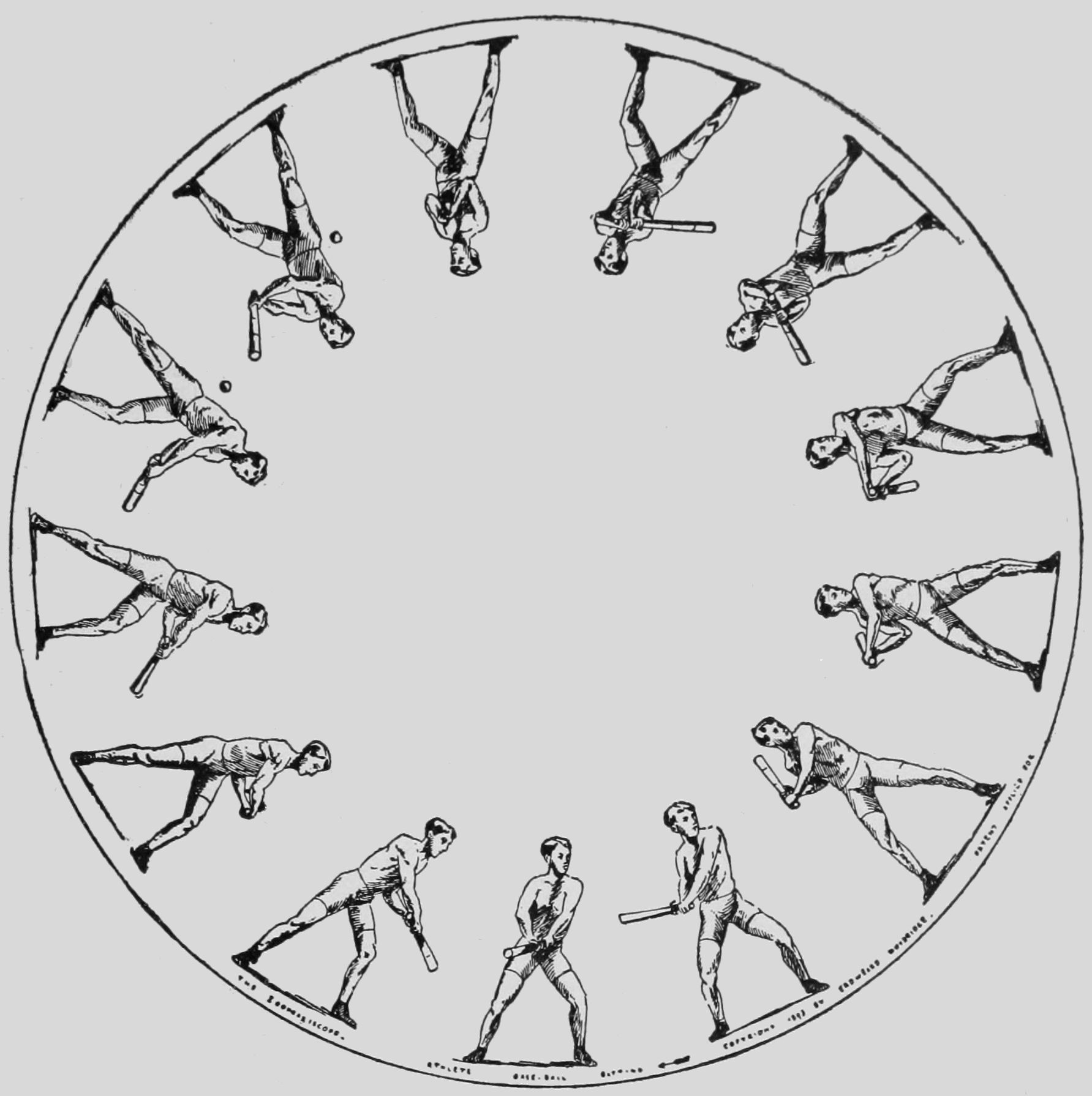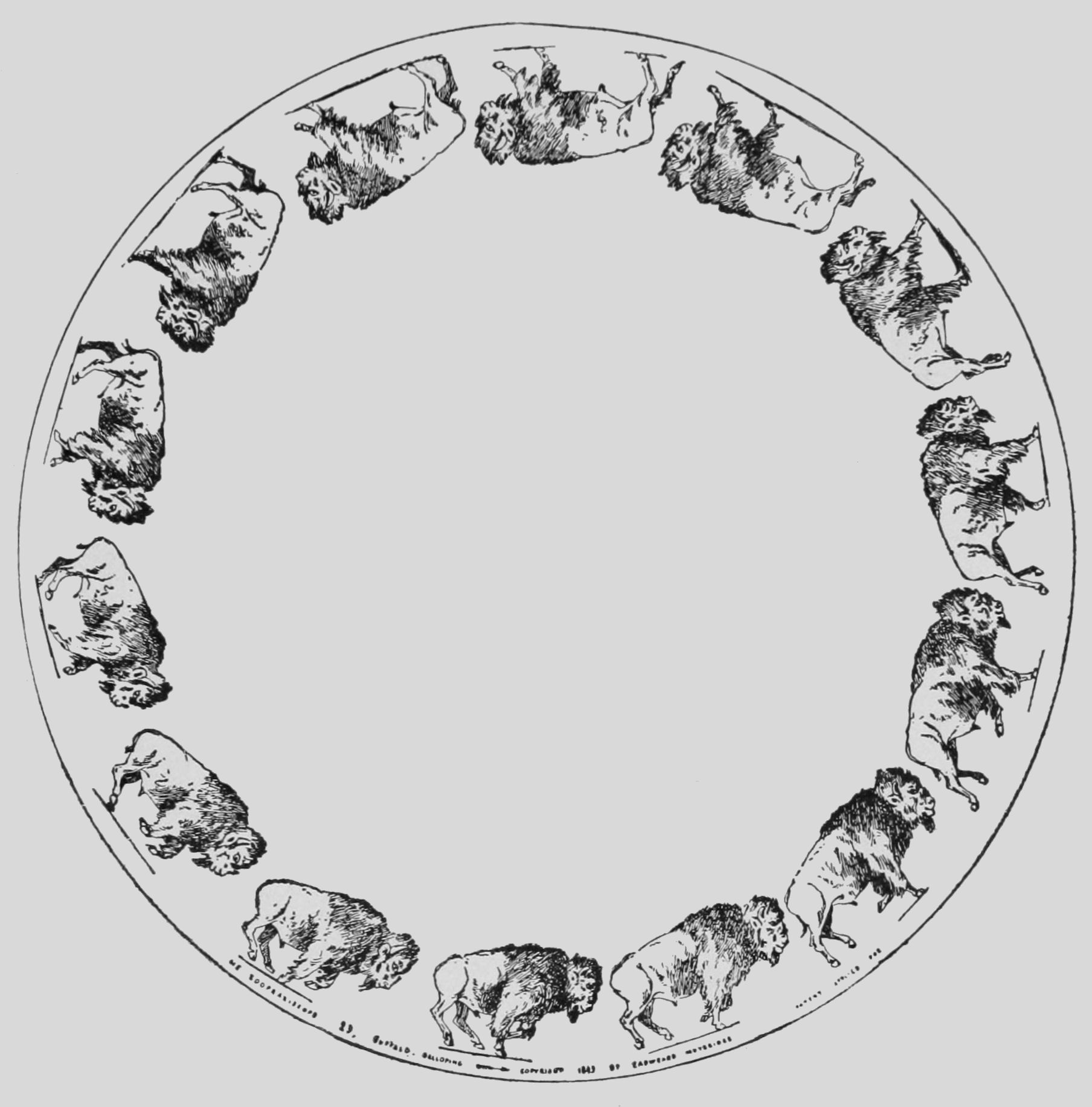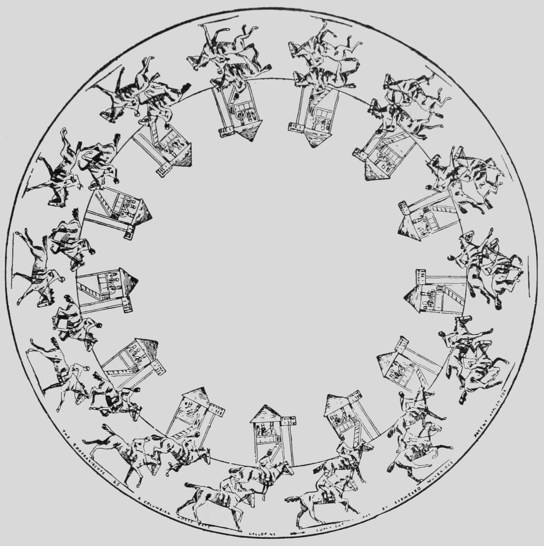 In the presentation of a Lecture on Zoöpraxography the course usually adopted is to project, much larger than the size of life upon a screen, a series of the most important phases of some act of animal motion—the stride of a horse, while galloping for example—which are analytically described. These successive phases are then combined in the Zoöpraxiscope, which is set in motion, and a reproduction of the original movements of life is distinctly visible to the audience.