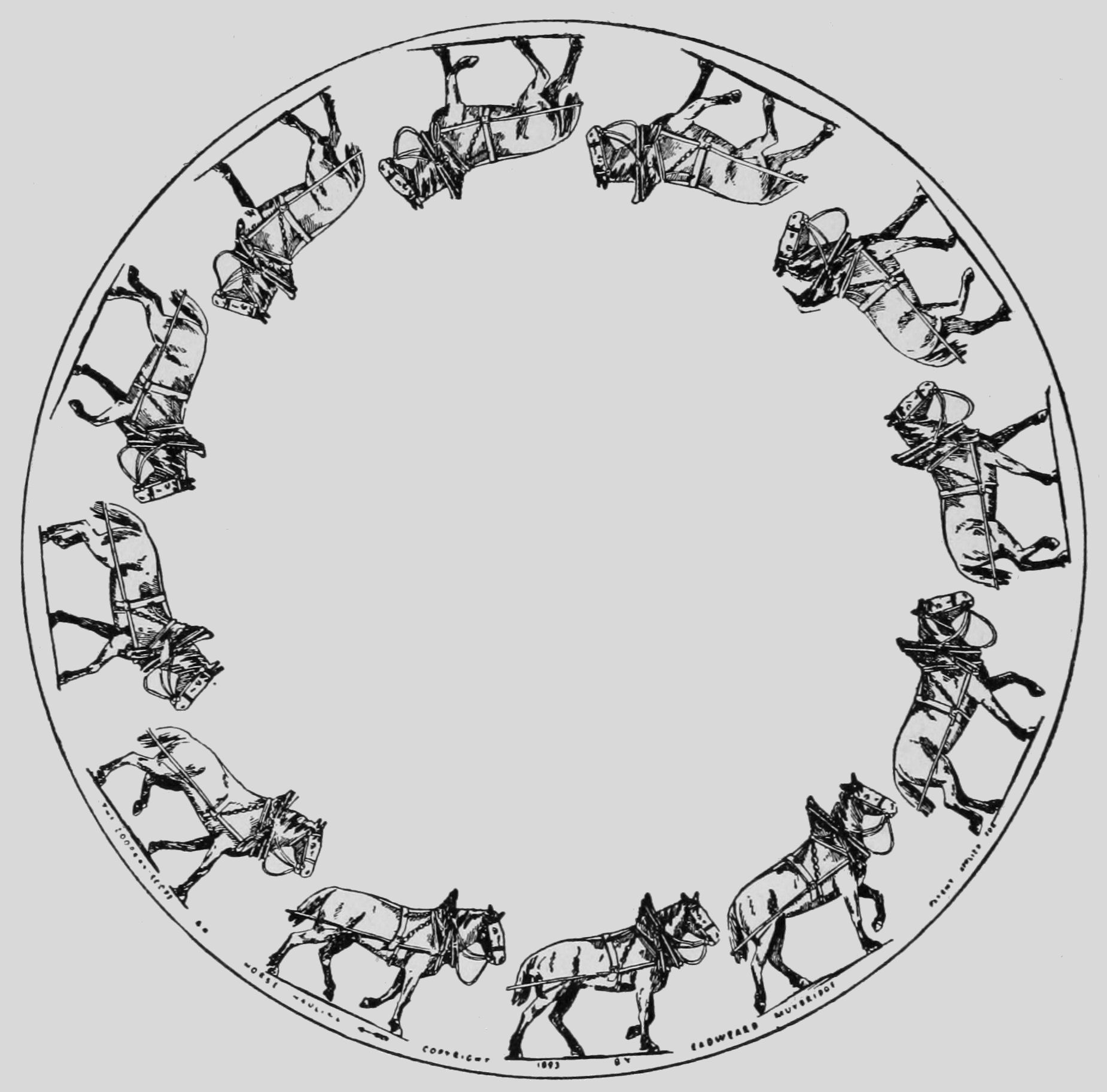 These first experiments of Zoöpraxography were made at Sacramento, California, in May, 1872. A few impressions were printed from the selected negative for private distribution, and were commented upon by the "Alta California," a newspaper published in San Francisco.