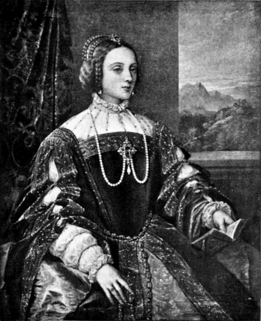 3. The Empress Isabella. Probably one of the two pictures referred to in a letter of 1544 from Titian to Charles V. In the Prado Gallery, Madrid. Size: 3 ft. 10 in. by 3 ft. 2½ in.