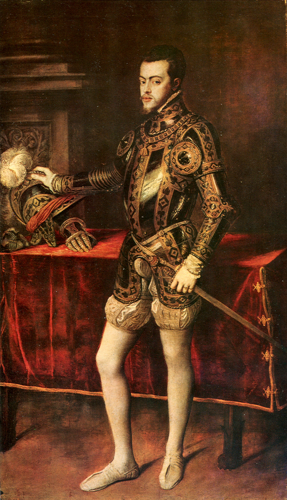 5. Philip II. Painted 1550, and now in the Prado Gallery, Madrid. Size: 6 ft. 4 in. by 3 ft. 7¾ in.