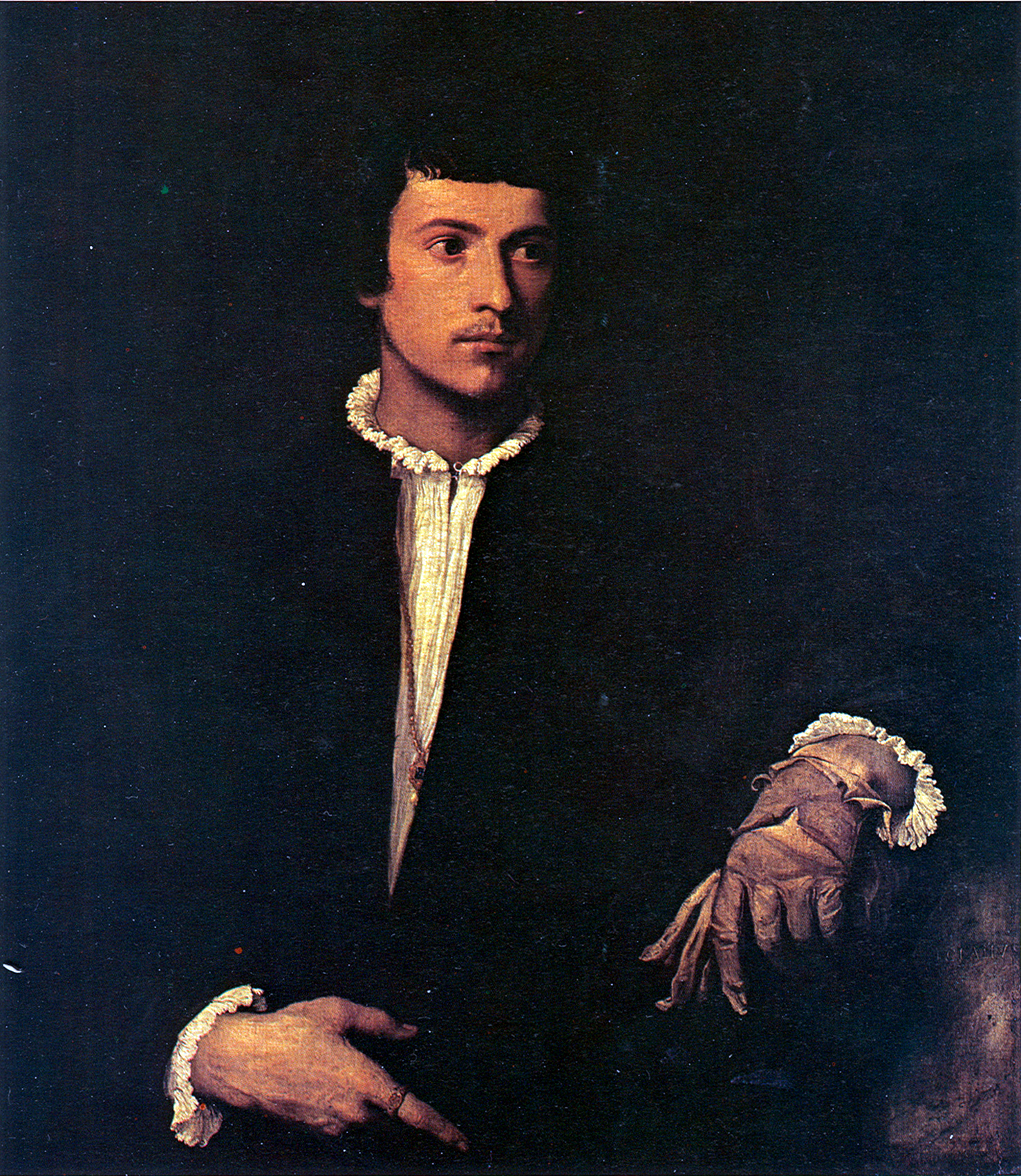 11. _The Man with the Glove. Assigned to Titian’s middle period. In the Louvre, Paris. Size: 3 ft. 31/3 in. by 2 ft. 11 in.