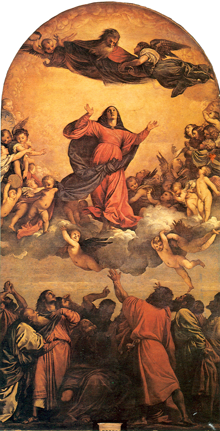 12. _The Assumption of the Virgin (Detail). Ordered 1516 for high altar of S. Maria Gloriosa de’ Frari, Venice. Shown to public, March 20, 1518. Now in the Venice Academy. Size: 22 ft. 9 in. by 11 ft. 10½ in.