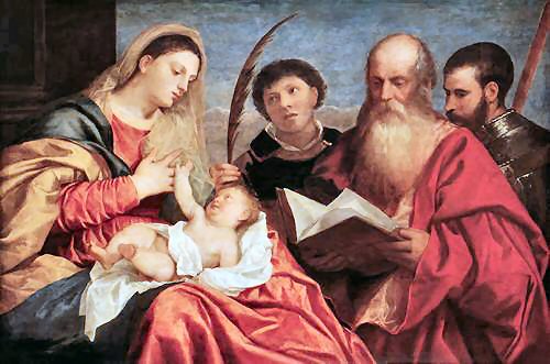 Yet in another mood Titian paints the life of the Holy Family as a pastoral idyl. A sunny landscape, a happy young mother, a laughing baby boy, bring the sacred subject very near to common human sympathies.
