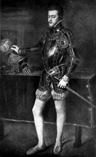 5. Philip II. Painted 1550, and now in the Prado Gallery, Madrid. Size: 6 ft. 4 in. by 3 ft. 7¾ in.