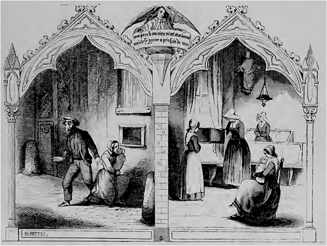 | Abandon de l'Enfant dans le tour. | Réception de l'enfant. |