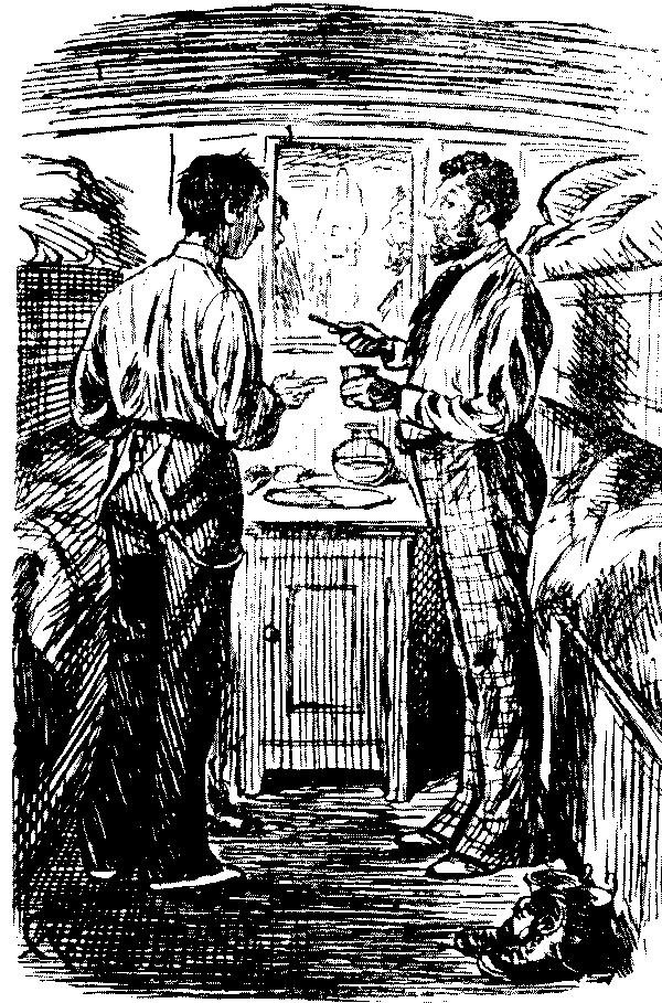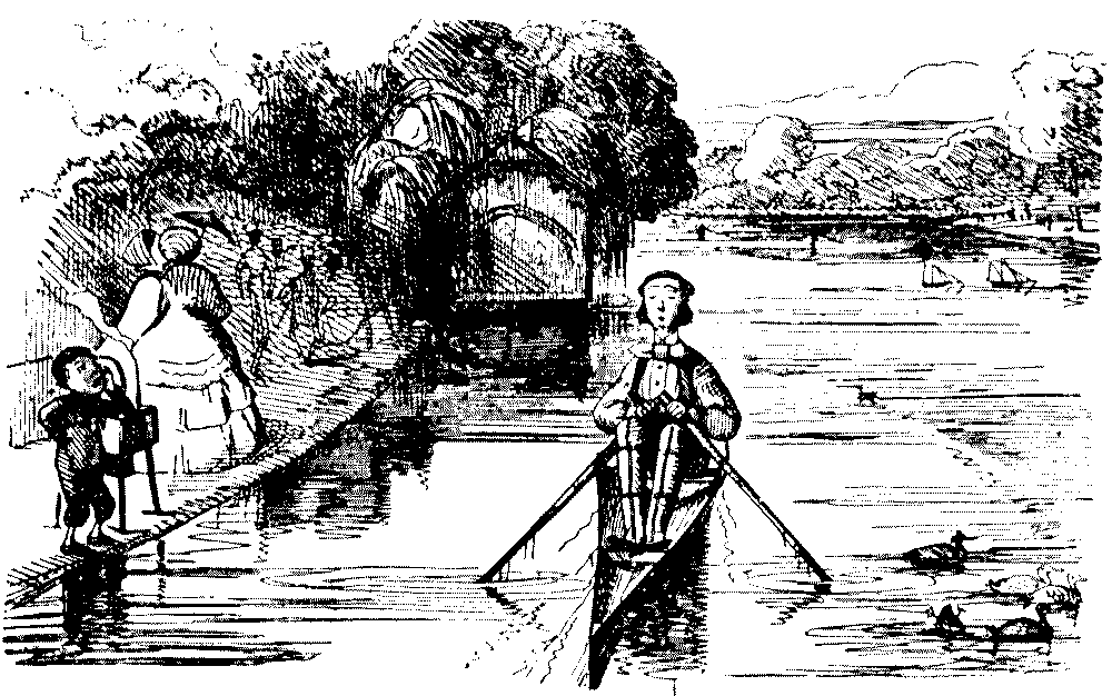 Binks, who is the kindest creature possible, has undertaken to fasten up the boat and bring along the siphons. Unfortunately both sculls have gone, and his friends are out of hearing.