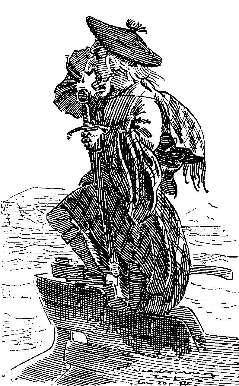 "My dear boy," said Brodrick, giving the overcoat a dexterous lift by the lappels that added fresh grace to its fit at the back of the neck, "you're out of it altogether. This is the thirteen-and-sixpenny coat supplied to Tommy Atkins in which,—following the advice of Dr. Johnson, wasn't it?—I, as I told the House the other day, took a walk down Bond Street. The surtout underneath, which I will fully display when the House gets a little fuller, cost seventeen-and-six net. You will observe it is so made that you can button it across and so save a waistcoat. If you must have a waistcoat, we can do it at eight-and-ninepence. As for trousers, these cost me thirteen shillings." (Here he stretched out and fondly regarded a manly leg.) "If I had taken a couple of pair, cut at the same time you know, I could have had the two for 25s. I see your eyes fixed on the boots. As you say, the shape of the foot may have something to do with it. But apart from that, the article is equal to what you pay thirty-five shillings for in Regent Street or Piccadilly. Eleven-and-ninepence was the figure. Misfits, very popular with privates newly joined, knock off the odd ninepence. Of course I don't wear this suit every day. Can't afford that; put 'em on whenever House in Committee on Army Supply or debate going forward on Army matters. It encourages Cawmell—Bannerman, you know; helps Woodall in getting his clothing vote; and, I believe, is rather liked by Tommy Atkins."