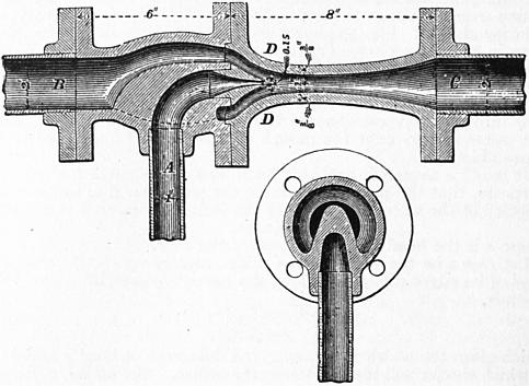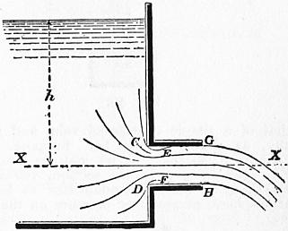 4 The discharge per second varied from .461 to .665 cub. ft. in two experiments. The coefficient .435 is derived from the mean value.