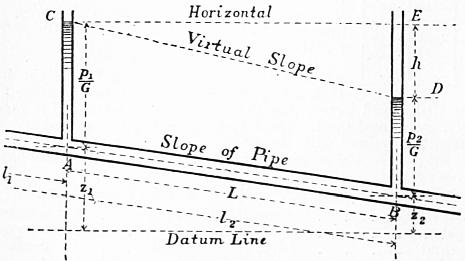 It is usual to reckon the difference of pressure at the inlet and outlet of a fan in inches of water-column. One inch of water-column = 64.4 ft. of air at average atmospheric pressure = 5.2℔ per sq. ft.