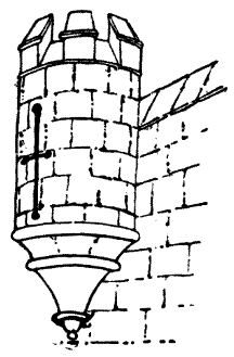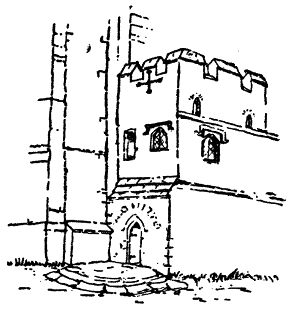 | This building affords an interesting example of the ground floor of a tower of the thirteenth century with massive walls and deep embrasures. It became famous as a prison in Tudor times and later when numerous notable persons were incarcerated; the carvings on the walls reveal many notable names. | ||