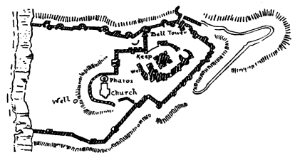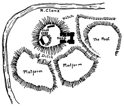 Man is essentially a pugilistic animal and experiences a keen sense of delight in hunting all objects of the chase, ferocious or otherwise, but the keenest undoubtedly when upon the track of the grandest of all game—man. But at the same time though willing to inflict injury he invariably does so at the minimum of risk to himself, deeming the preservation of his own life, the greatest of the gifts that Nature has bestowed upon him, of the first importance. Thus it is conceivable that after the selection of a stone or the fabrication of a club by primitive man he naturally proceeded to make a protection for himself to counteract the effect of those weapons when wielded by others, and the shield would follow as a logical sequence. The shield was to all intents and purposes a movable castle, since [Pg 2] it afforded him the means of causing the greatest amount of annoyance to his enemy, while at the same time furnishing the maximum means of protection to himself; a definition which is appropriate to the first and latest type of feudal castle. As a non-movable protection he would soon recognise the advantages afforded by a tree, a rock, a fold in the ground; and the efficacy of these natural defences would suggest artificial examples where they were non-existent.