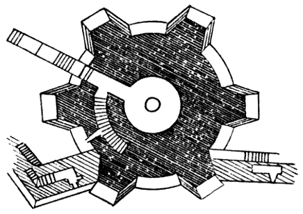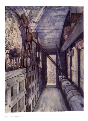 | The method for raising and lowering the Portcullis of a medieval castle is shown here, the example being taken from the Tower of London. This effective defence could be entirely detached if required and dropped at a critical moment when, perhaps, a few assailants had gained admission, and were in that manner cut off from their comrades. |