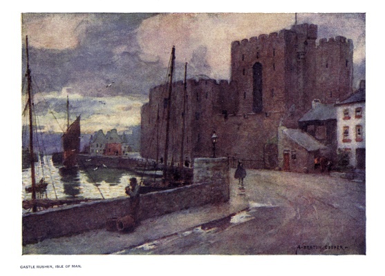 | Castle Rushen, in Castletown, is the ancient residence of the Kings of Man; it probably dates from the thirteenth century and is still quite entire. The Keep-like structure upon the right are the curtain walls and towers surrounding the inner Bailey. | ||