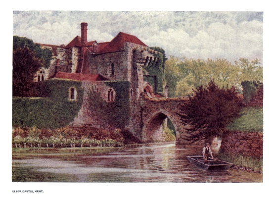 | Leeds Castle is of the Concentric type and stands upon two islands in the middle of a lake which contains about fifteen acres of water. It has a rich history and the remains are of considerable interest, although the earliest work now to be seen is not older than the twelfth century. The Gloriette or Keep is that portion lying to the right in the picture. | ||