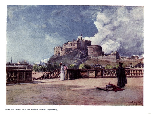 | Edinburgh Castle is the centre of the national history of Scotland. It stands upon the ancient Burgh of Edwin, King of Northumbria, and although sadly altered and disfigured in comparatively modern times by the addition of many unpicturesque buildings, it still possesses interesting features of the past, and an imposing aspect when viewed from the city. | ||