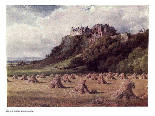 | Stirling Castle occupies a precipitous site upon the river Forth and is connected with the history of Scotland from a very early period. Of sieges and battles it has seen its full share, and although modern fortifications and barracks somewhat detract from its appearance, it still possesses a number of medieval structures of great beauty and interest. | ||