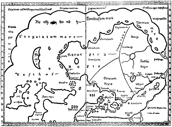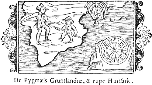 In Scandinavian literature also we find mythical ideas attached to the Skrælings of Greenland. In the Norwegian “Historia Norwegiæ” (thirteenth century) it is said that when “they are struck with weapons while alive, their wounds are white and do not bleed, but when they are dead the blood scarcely stops running.” The Dane Claudius Clavus (fifteenth century) relates that there were pygmies in Greenland two feet high (like our elves and brownies), and the same is reported in a letter to Pope Nicholas V. (circa 1450), with the addition that they hide themselves in the caves of the country like ants (see next chapter); that is, like underground beings, although this trait may well be derived from knowledge of the Eskimo. Mythical tales about the Greenland Eskimo also appear in Olaus Magnus, and in Jacob Ziegler’s Scondia (sixteenth century) [cf. Grönl. hist. Mind., iii. pp. 465, 501].
