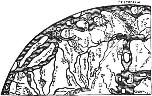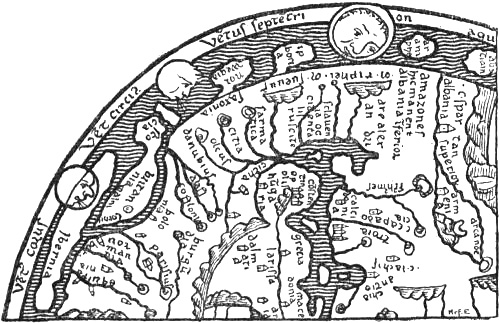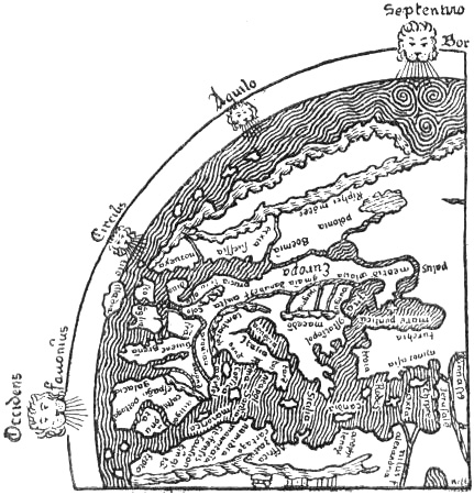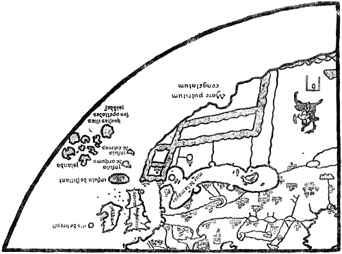 G. Storm [1890] and A. A. Björnbo [1909, pp. 229, ff.] have sought to explain the connection of Wineland with Africa as an attempt on the part of the Icelandic geographers to unite new discoveries of western lands with the classical-mediæval conceptions of the continents as a continuous disc of earth with an outer surrounding ocean. But even if such “learned” ideas prevailed in Iceland and Norway (cf. the “King’s Mirror”), it would nevertheless be unnatural to unite Africa and Wineland, which lay near Hvítramanna-land, six days’ sail west of Ireland, unless there were other grounds for doing so. Although agreeing on the main point, Dr. Björnbo maintains (in a letter to me) that the Icelanders may have got their continental conception from Isidore himself, who asserted the dogma of the threefold division of the continental circle; and the question whether Wineland was African or not depended upon whether it came south or north of the line running east and west through the Mediterranean. But the same Isidore also described the Insulæ Fortunatæ and other countries as islands in the Ocean, and his dogma could not thus have hindered Wineland from being regarded as an island like other islands (cf. Adam of Bremen’s islands), but why then precisely African? Besides, the Icelandic geography and the Historia Norwegiæ represent two different conceptions, one as a continent, the other as islands. It cannot,[Pg 3] therefore, have been Isidore’s continental dogma that caused them both to assume the country to be African. It seems to me that no other explanation is here possible than that given above.