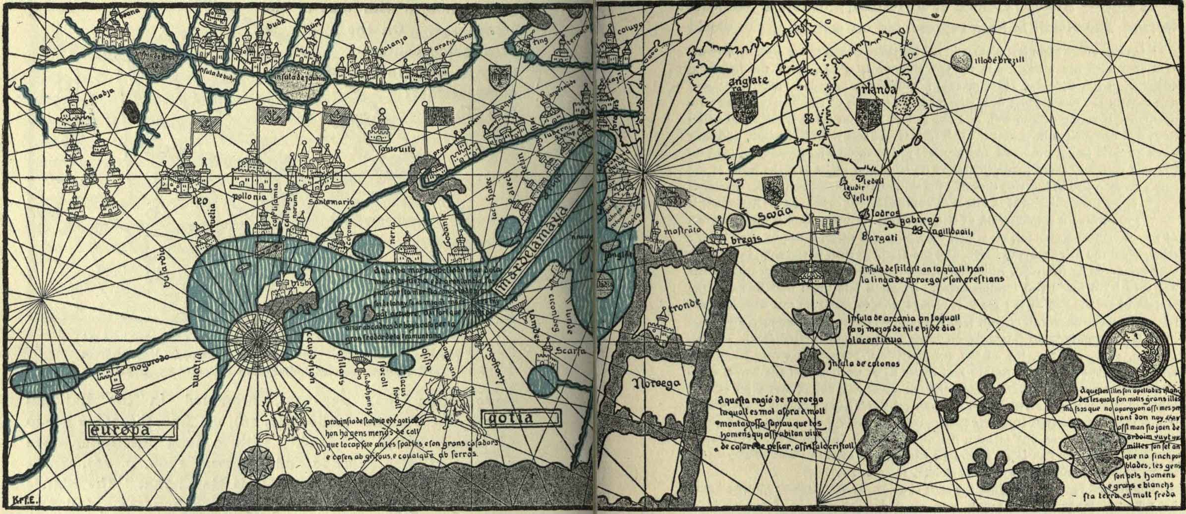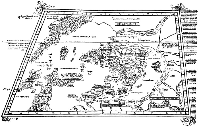 “This country was discovered and settled by the Telensians [i.e., the Icelanders] and strengthened with the Catholic faith; it forms the end of Europe towards the west, nearly touches the African Islands (‘Africanas insulas’), where the returning ocean overflows” [i.e., falls in].