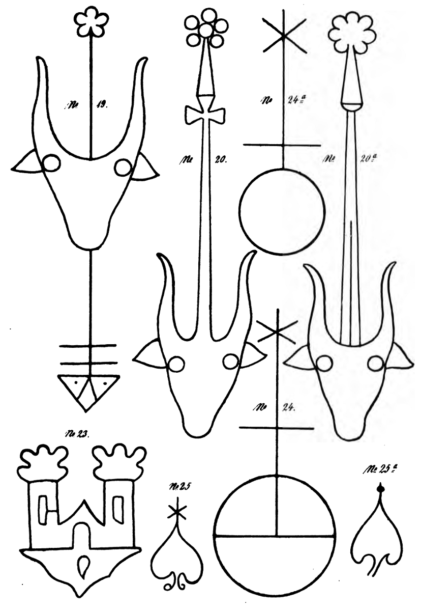Man sieht daher bei den kleineren Blättern, wenn sie keinen breiten Papierrand haben, vom Ochsenkopf höchstens die obere Blume oder die untere dreieckige Spitze, von der hohen Krone den Stirnreif oder das Kreuz.