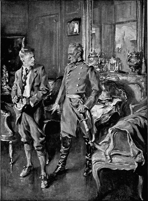 [pg 4] As the car stopped several officers were already beside the running-board, halted stiffly at attention. The general officer, his cigar between his gloved fingers, leaned over the edge of the tonneau and said something in a very quiet voice.