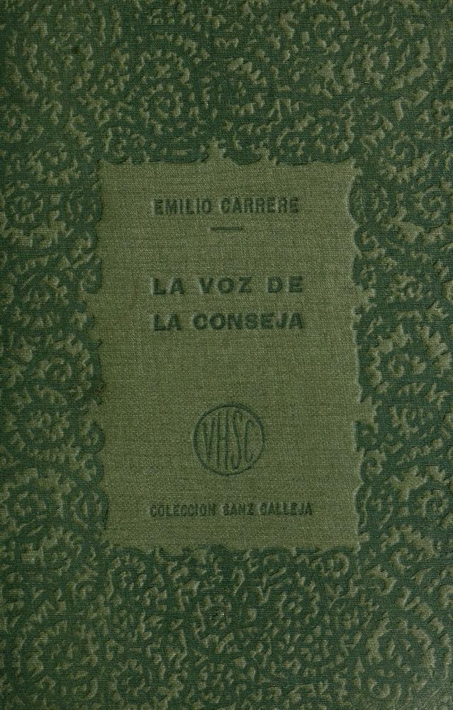 | L a V o z d e l a C o n s e j a Selección de las mejores novelas breves y cuentos de los más esclarecidos literatos. Recopilación hecha por E m i l i o C a r r è r e Firmas del tomo primero Galdós.—Benavente.—Condesa de Pardo Bazán.—Unamuno.—Palacio Valdés.—Rubén Darío.—Baroja.—Dicenta.—Ricardo León.—Nogales.—Répide.—Arturo Reyes y Pedro Mata. V. H. SANZ CALLEJA Editores e Impresores C. Central: Montera, 31.—Talleres: R. Atocha, 23 MADRID | ||