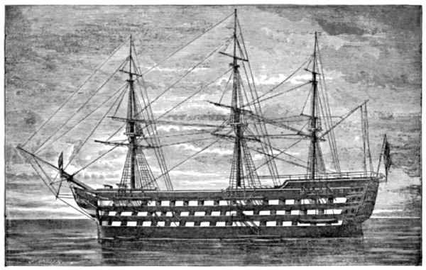 The ship immediately preceding the existing “Victory,” was, like her, a first-rate three-decker, carrying 110 guns, and was accounted the finest ship in the service. In 1744 [Pg 4] she was the flagship of Admiral Sir J. Balchen, a venerable officer of 75 years of age, who had been called from the honourable retirement of Greenwich Hospital to command a fleet destined to relieve Sir Charles Hardy, then blockaded in Lisbon by a superior French force, under the Count de Rochambault. On returning from the successful performance of this service, the fleet was dispersed in the chops of the Channel by a tremendous gale, on October 4th. The rest of the ships, though much shattered, gained the anchorage of Spithead in safety, but the “Victory” was never more heard of, though from the evidence of fishermen of the island of Alderney, she was believed to have run on to the Caskets, some dangerous rocks lying off that island, where her gallant crew of about a thousand perished to a man.