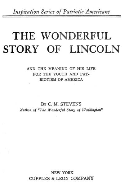 Project Gutenberg's The Wonderful Story of Lincoln, by Charles M. Stevens