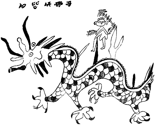 [322] According to Williams, this is a young dragon without a horn, although others, as in the text, say with one.