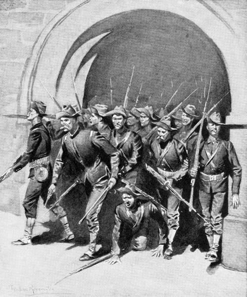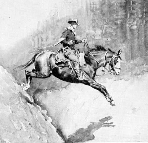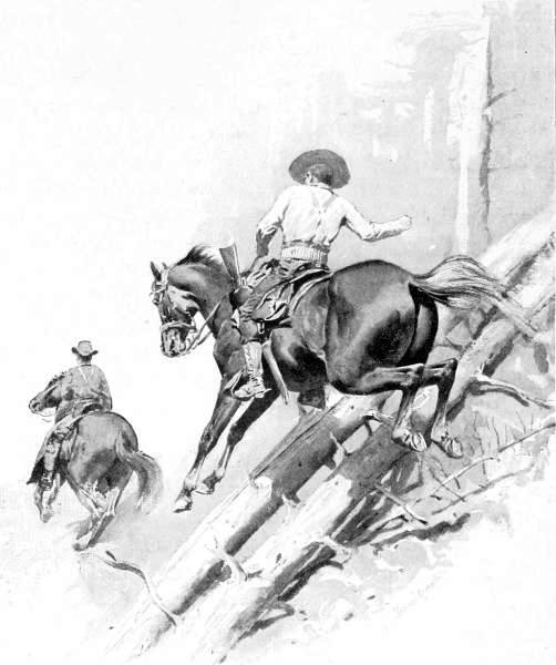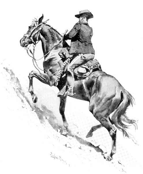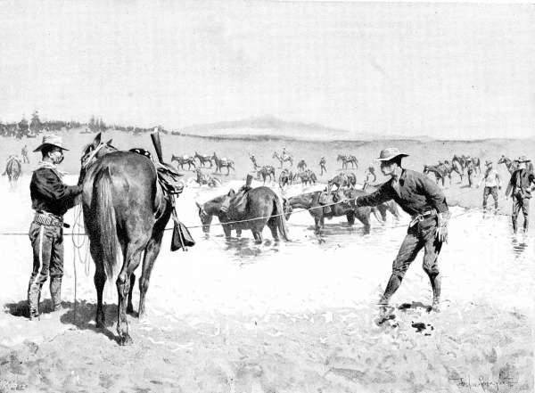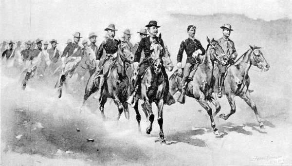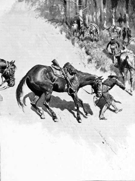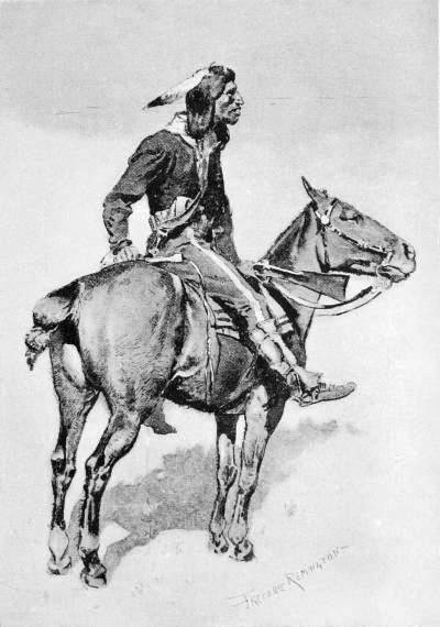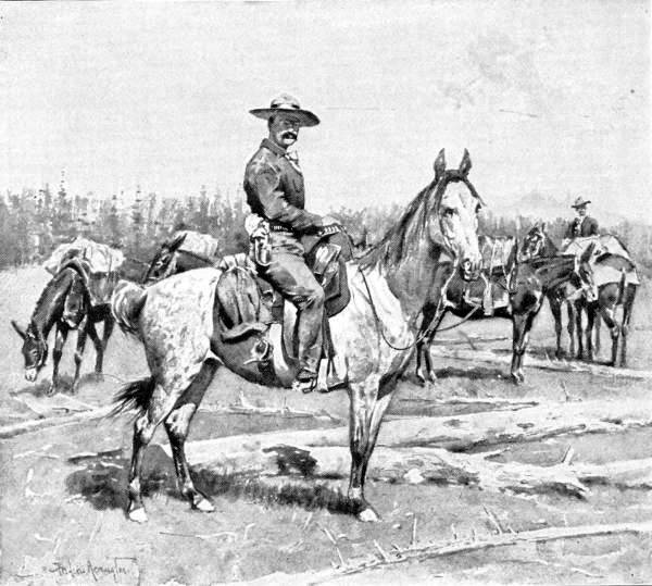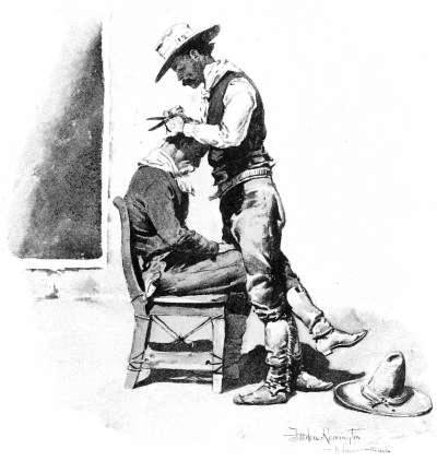 I selected Captain Mickler—the immaculate, the polo-player, the epitome of staff form, the trappiest trooper in the Dandy Fifth—and, together with two orderlies, we started. Mickler was mounted on a cow-pony, which measured one chain three links from muzzle to coupling. Mickler had on English riding-togs—this is not saying that the pony could not run, or that Mickler was not humorous. But it was no new experience for him, this pulling a pony and coaxing him to attempt breakneck experiments, for he told me casually that he had led barefooted cavalrymen over these hills in pursuit of Apaches at a date in history when I was carefully conjugating Latin verbs.