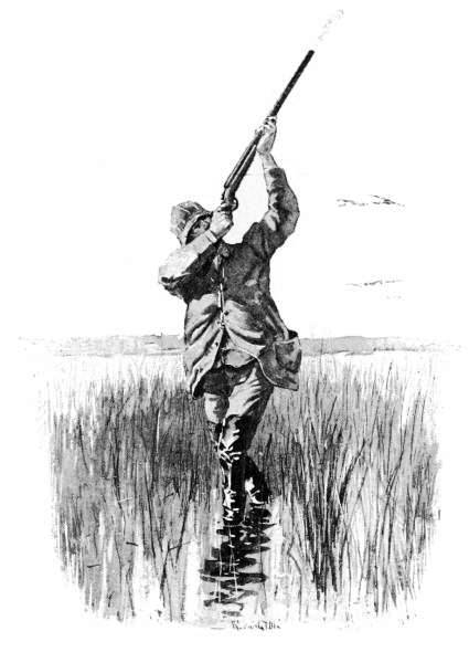 One by one the tired hunters and dogs struggled into camp all disappointed, except the dogs, which could not tell us what had befallen them since morning. The day following the dogs started a big black bear, which made a good run up a bad place in the hills, but with the hunters scrambling after in full cry. The bear treed for the dogs, but on sighting the horsemen he threw himself backward from the trunk and fell fifteen feet among the dogs, which latter piled into him en masse, the little fox-terriers being particularly aggressive. It was a tremendous shake-up of black hair and pups of all colors; but the pace was too fast for Bruin, and he sought a new tree. One little foxie had been rolled over, and had quite a job getting his bellows mended. This time the bear sat on a limb very high up, and General Miles put a .50-calibre ball through his brain, which brought him down with a tremendous thump, when the pups again flew into him, and “wooled him,” as the cowboys put it, to their hearts’ content.