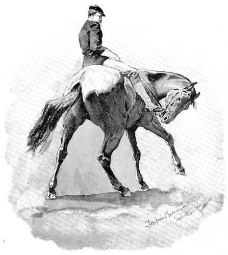 The car had been side-tracked at Fort Keough, and on the following morning the porter shook me, and announced that it was five o’clock. An hour later I stepped out on the rear platform, and observed that the sun would rise shortly, but that meanwhile the air was chill, and that the bald, square-topped hills of the “bad lands” cut rather hard against the gray of the morning. Presently a trooper galloped up with three led horses, which he tied to a stake. I inspected them, and saw that one had a “cow saddle,” which I recognized as an experiment suggested by the general. The animal bearing it had a threatening look, and I expected a repetition of a performance of a few days before, when I had chased the general for over three hours, making in all twenty-eight miles.