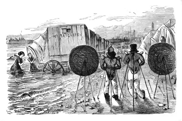 Long, long ago there might have been seen on the sands at Ramsgate two stuffed figures, the size of life, intended to represent soldiers; for they were bedecked with the red coat, cap, and trousers of the ordinary private. The clothes were simply stuffed out into something resembling human forms, but the [Pg 14] effect, as may be supposed, was ludicrous in the extreme. They were the work of a professor of archery, who supplied his customers with bows and arrows, with which the archer showed how seldom he could hit the target made by the two soldiers. Leech and I watched the shooting for some time, till the little sketch-book was produced, and Leech made a rapid drawing of the two soldiers, afterwards to figure in an inimitable cut in Punch.