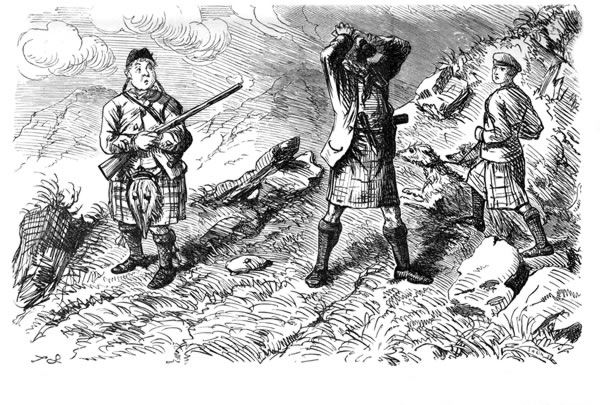 "The late Duke of Athole asked him to Blair, and took him for a deer-drive. Previously to that there had been a good deal written in the papers against the Duke, in consequence of his Grace having stopped two University men from crossing the forest; and Leech made a drawing in Punch by no means complimentary of the Duke, who was represented turning back the tourists, exclaiming, 'I am the regular Do-Dhu.' But you must turn to Punch, and you will find the illustration for yourself. I speak from memory as to the exact words; but I well recollect Leech, in his jocose way, asking me whether I thought he would be safe in the Duke's hands after that squib. I afterwards heard his Grace was delighted with it, and carried the woodcut about in his pocket to show to his friends.