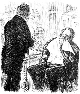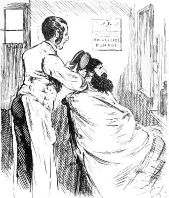 Irritable Old Gentleman (who is rather particular about his appearance). "I wish you'd be Careful. That's the Third or Fourth Time you've Pricked me with your Scissors!"