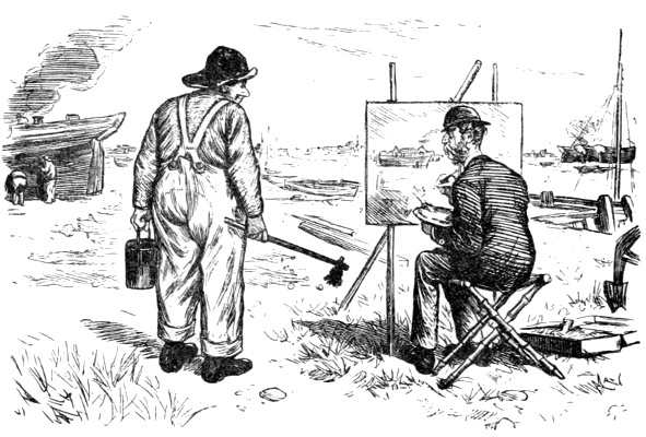 Village Hampden ("who with dauntless breast" has undertaken, for sixpence, to keep off the other boys). "If any of yer wants to see what we're a Paintin' of, it's a 'Alfpenny a 'Ead, but you marn't make no Remarks."