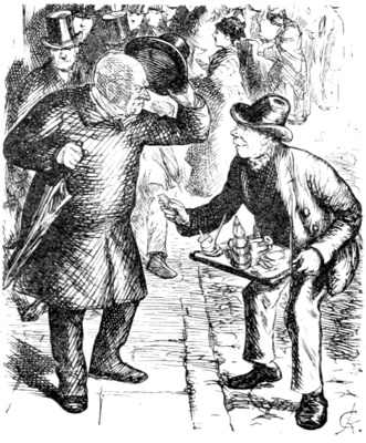 Irish Beggarwoman (to our friend, Dr. O'Gorman, whose Nose is of the shortest). "Won't ye give me a Copper, Docther dear? They, now, if ye haven't wan Penny convanient!—and may the Blissed Saints incrase ye!"