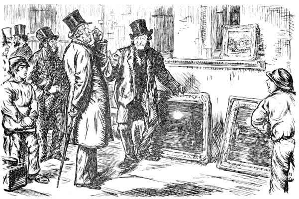 Rural Connoisseur. "He's a P'intin' Two Pictur's at Once, d' yer See? 'Blest if I don't Like that there Little 'Un as he's got his Thumb through, the Best!"