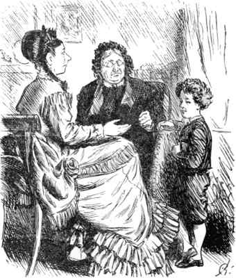 Mrs. F. ("coming from behind the Screen, sneakin' just like her"). "There! Oh you Goodfornothing Boy, now I've found you out. How dare you touch the Wine, Sir?"