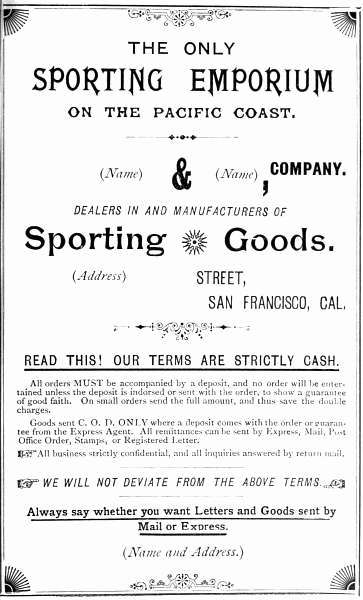 The instances above quoted will be sufficient to give the reader a fair notion of the barefaced manner in which these nefarious dealings are carried on. There is no beating about the bush in any instance; no hiding away of the real intent with which the goods are supplied. They are not called cheating-tools in so many words, but no attempt is made to smother up the actual nature of the articles. The dealer does not say 'Special Cards,' or 'Comical Cards,' or anything of the kind. He puts the matter plainly before his customers, and says, 'Our Latest Marked Back Playing Cards!' There is no mistaking his meaning; he is proud of it, and likes to let the world know the kind of things he has to sell.