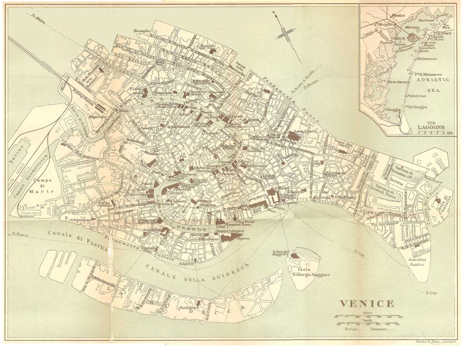 For purposes of description we have divided the city and outlying islands of the Venetian lagoon into twenty sections, arranged rather with regard to their relative historical and artistic importance than to strict topographical considerations, although these have not been lost sight of. In our quality of cicerone we have drawn from an acquaintance of the city at various times extending over a period of twenty years: more detailed and practical information may be sought in the admirable guide-books of Baedeker, Grant Allen, Gsellfels and Murray.