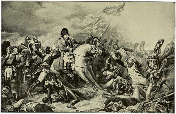 The Duke of Wellington now dismounted, placed himself at the head of his line and led his men against the[484] remaining numbers of four battalions of the Old Guard—the only unbroken troops remaining behind, while Ney was striving to rally his fugitives. His cocked hat was gone, and his clothes were literally riddled with bullets, though he himself remained untouched. The intrepid marshal, at Wellington's approach, took part once more in the mêlée, sword in hand, and on foot. But nothing could withstand the impetuous assault of the victorious British.