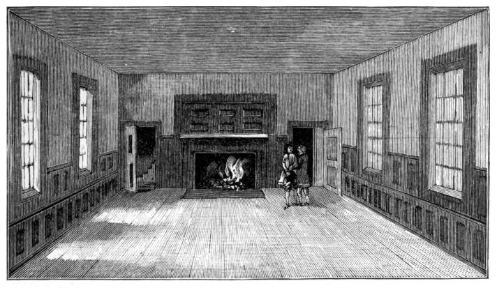 [15] Things seemed to be getting into somewhat the condition contemplated in the satirical print of “The Man in the Moon,” which appeared as frontispiece to a tract published in London in 1776, entitled “A Plea of the Colonies on the Charges brought against them by Lord Mansfield and others.” The Man in the Moon is George III. looking through a telescope held by his Tory chief justice, whose sleeve shows the Scotch plaid of Clan Murray. He looks upon a reversed and topsy-turvy world, in which New York (whose true latitude is nearly the same as that of Naples) appears farther north than London, and America is east of Europe. The American coast is covered with vast armies, and the whole British fleet is on its way thither, leaving England exposed to the attack of a French host gathered at Dunkirk. Meanwhile the Gallic cock crows lustily, and the sketchy outline of Great Britain indicates that the artist supposes the island “may be so far wasted before the year 1800, that people will hardly know where the nation resided that was once so formidable.” See Tracts 985, Harvard University Library.
