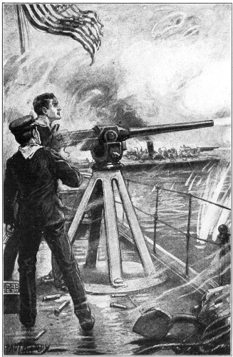 Tom, the man he had beckoned to, stepped onto the framework, and, taking a rod, commenced to ram it into the opening through which the metal had been poured.