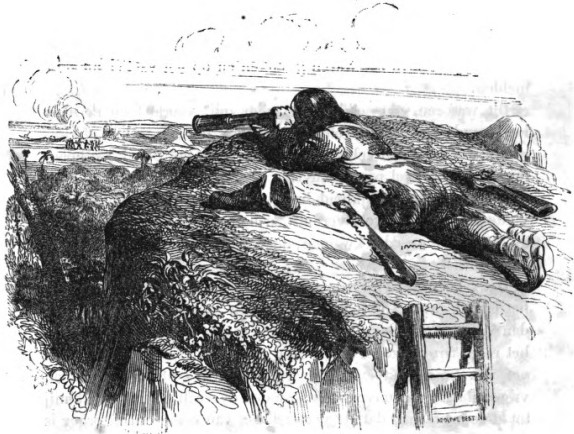 Mijn volk had gaarne verlof van mij willen hebben, om hen in het duister te overvallen; maar ik wilde er zooveel van sparen, en zoo weinig van doodschieten als mogelijk, en vooral wilde ik niet gaarne een van ons volk aan het gevaar blootstellen van een kogel van hen te ontvangen; daar ik wist, dat zij zeer goed gewapend waren. Ik besloot af te wachten of zij zich niet zouden verdeelen, en om derhalve te beter de overmagt op hen te hebben, liet ik mijne hinderlaag naderbij rukken, en gelastte Vrijdag en den kapitein op handen en voeten, en zoo digt langs den grond als zij konden, naar hen toe te kruipen en hen zoo digt mogelijk te naderen, alvorens zij vuur gaven. Niet lang waren zij in die houding gebleven of de bootsman, die de voornaamste belhamel van de muiterij was geweest, en die zich van allen het snoodst en laaghartigst gedragen had, kwam met nog twee van het volk naar hen toe. De kapitein werd woedend, toen hij den voornaamsten aanlegger zoo digt onder zijn bereik zag, dat hij zich naauwelijks tijd gunde om hem zoo digt te laten naderen, dat hij zeker van hem was, want hij had nog alleen zijne stem gehoord; maar toen zij naderkwamen sprongen de kapitein en Vrijdag op de been en gaven vuur op hen. De bootsman viel dood neder; de man, die bij hem was, had een kogel in het lijf gekregen en viel naast hem, schoon hij eerst een paar uur daarna stierf, en de derde liep weg.