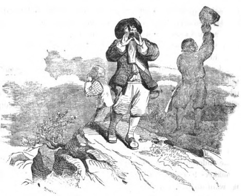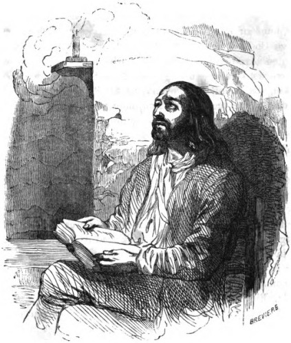 Het was gelukkig voor den armen man, dat het Vrijdag was, die hem te hulp kwam, want hij, die in zijn vaderland die beesten gezien had, was er niet bang voor, terwijl zoo een onzer op een verderen afstand geschoten had, hij misschien den wolf gemist of welligt den gids getroffen had. Het was genoeg om een moediger man dan ik te ontzetten, en ons geheele gezelschap was er inderdaad van verschrikt, toen wij na het afschieten van Vrijdags pistool, aan weerszijden het afschuwelijkst wolvengehuil hoorden, dat door de echo's in het gebergte verdubbeld werd, zoodat het scheen alsof er eene ontzettende menigte was, en misschien waren er genoeg om ons reden tot vrees te geven.